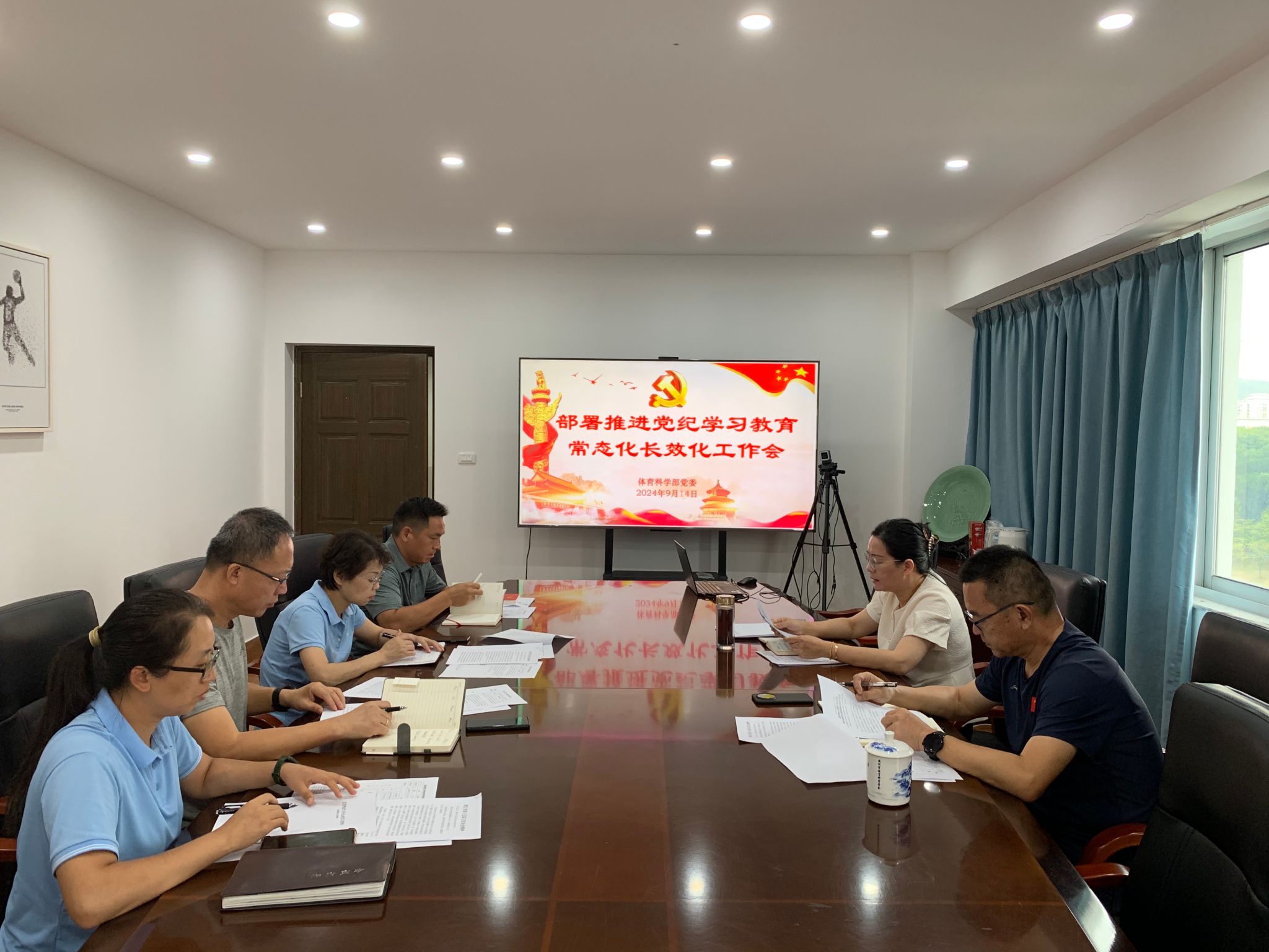9月14日上午,体育科学部在体育馆四楼会议室召开党委扩大会,传达学校党建工作领导小组会议精神和部署要求,总结学部党纪学习教育情况,部署推进学部党纪学习教育常态化长效化工作。学部党委书记陈素云作党纪学习教育总结及学部党纪学习教育常态化长效化工作部署。学部领导班子、党委委员、各党支部书记等参加会议。