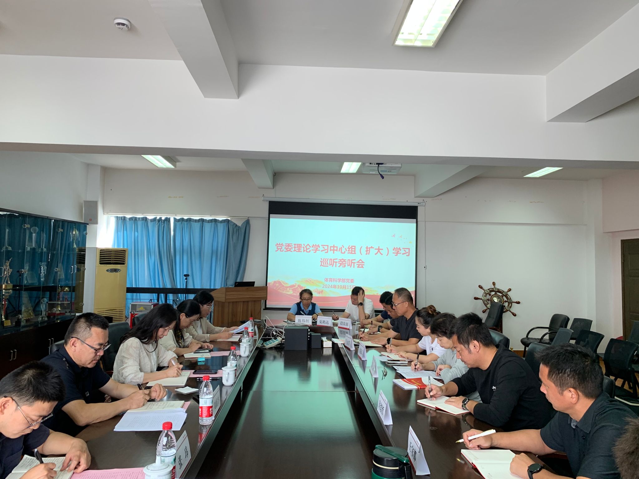 10月15日,朱雪波副校长巡听体育科学部理论学习中心组(扩大)学习会。校研究生院党委书记郑曼曼、研究生院研究生工作办公室主任张玮旁听了学习会。学部理论学习中心组成员、中层干部参加了学习会。