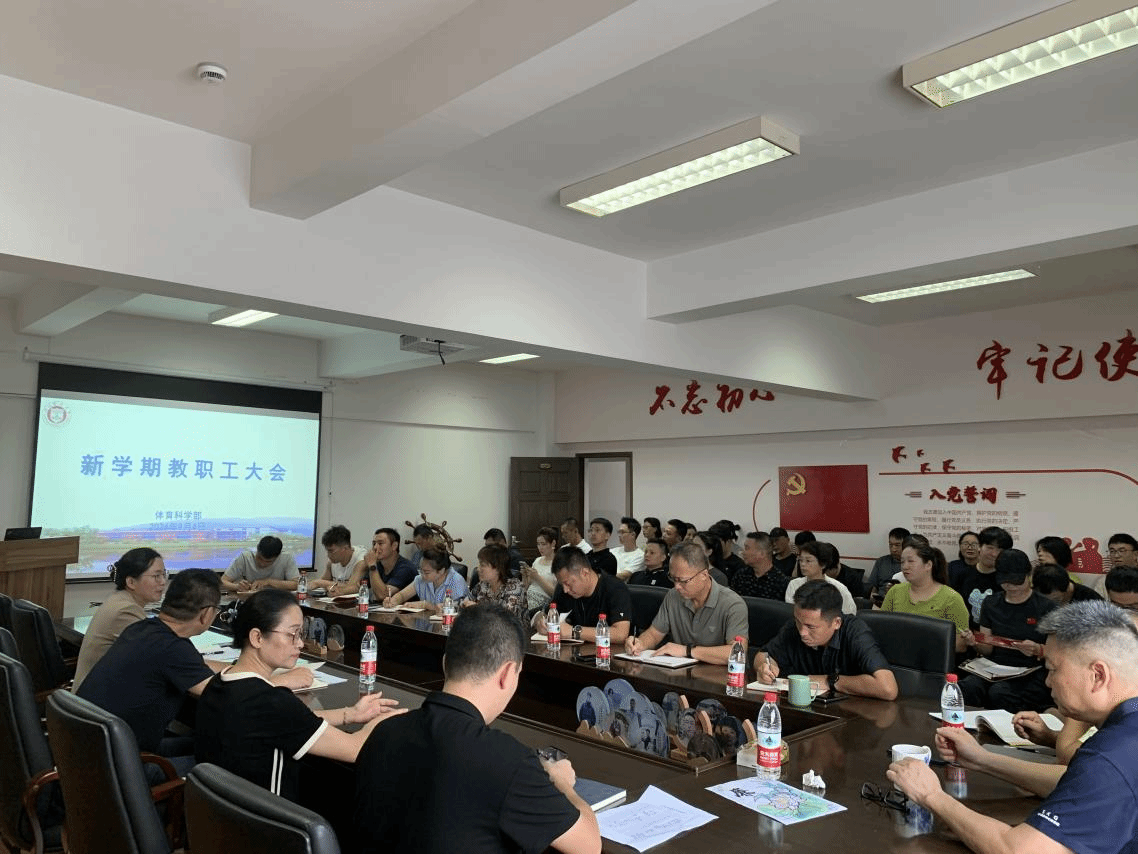 9月4日上午,体育科学部在体育馆四楼会议室召开新学期教职工大会,学习宣传贯彻党的二十届三中全会精神,开展师德师风专题学习,传达学习学校相关会议精神,总结上半年及暑期工作,部署新学期重点工作。学部主任刘海平主持会议作工作部署,党委书记陈素云作党的二十届三中全会精神宣讲,全体教职工参加会议。