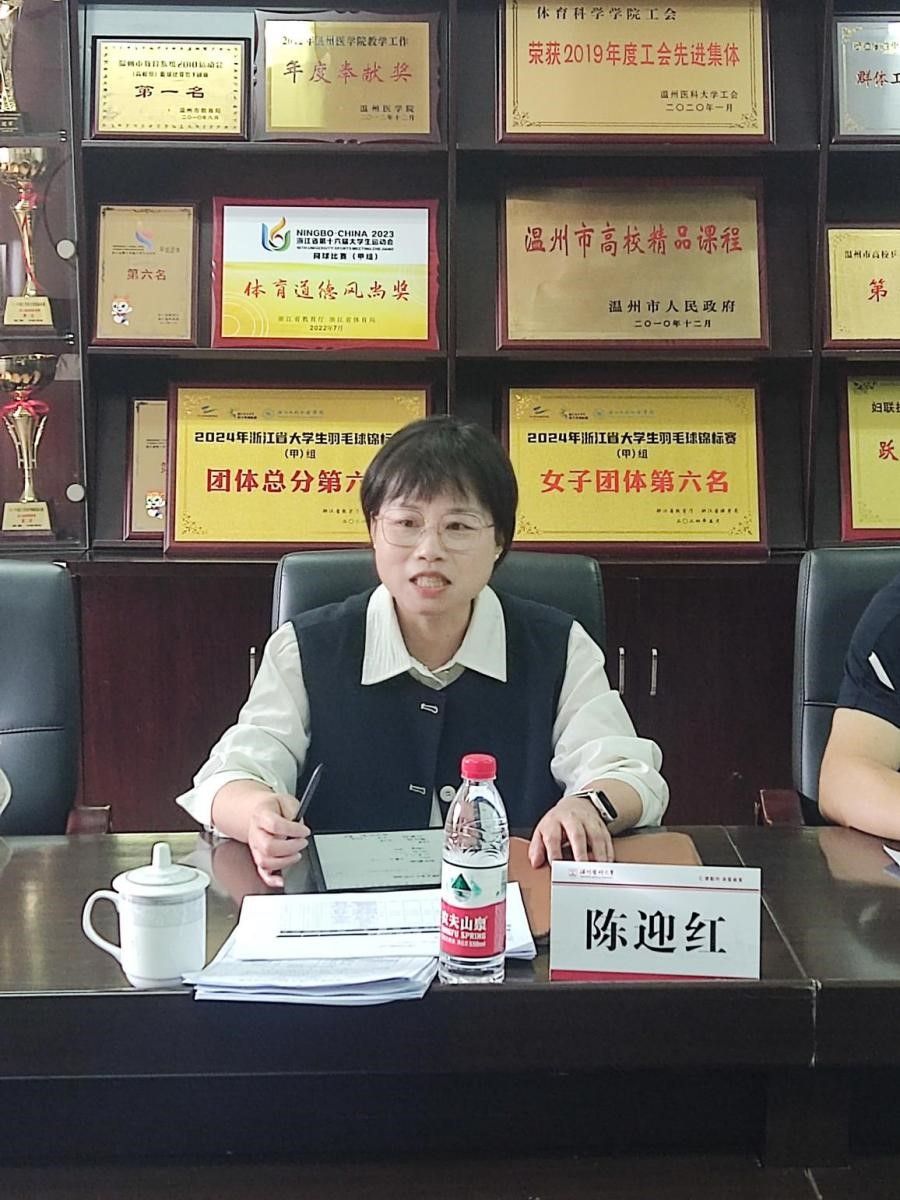 陈迎红认真听取了学部的工作汇报。在随后的交流发言中,陈迎红对体育科学部的科研发展提出三点建议:一是积极寻求跨学科的合作,找到交叉点和结合点,推动科研的突破。二是加强教师队伍的梯队建设,对教师进行分类管理和分级指导。三是提高课题选题的精准度,选题与标书需要经过多轮打磨和细化。