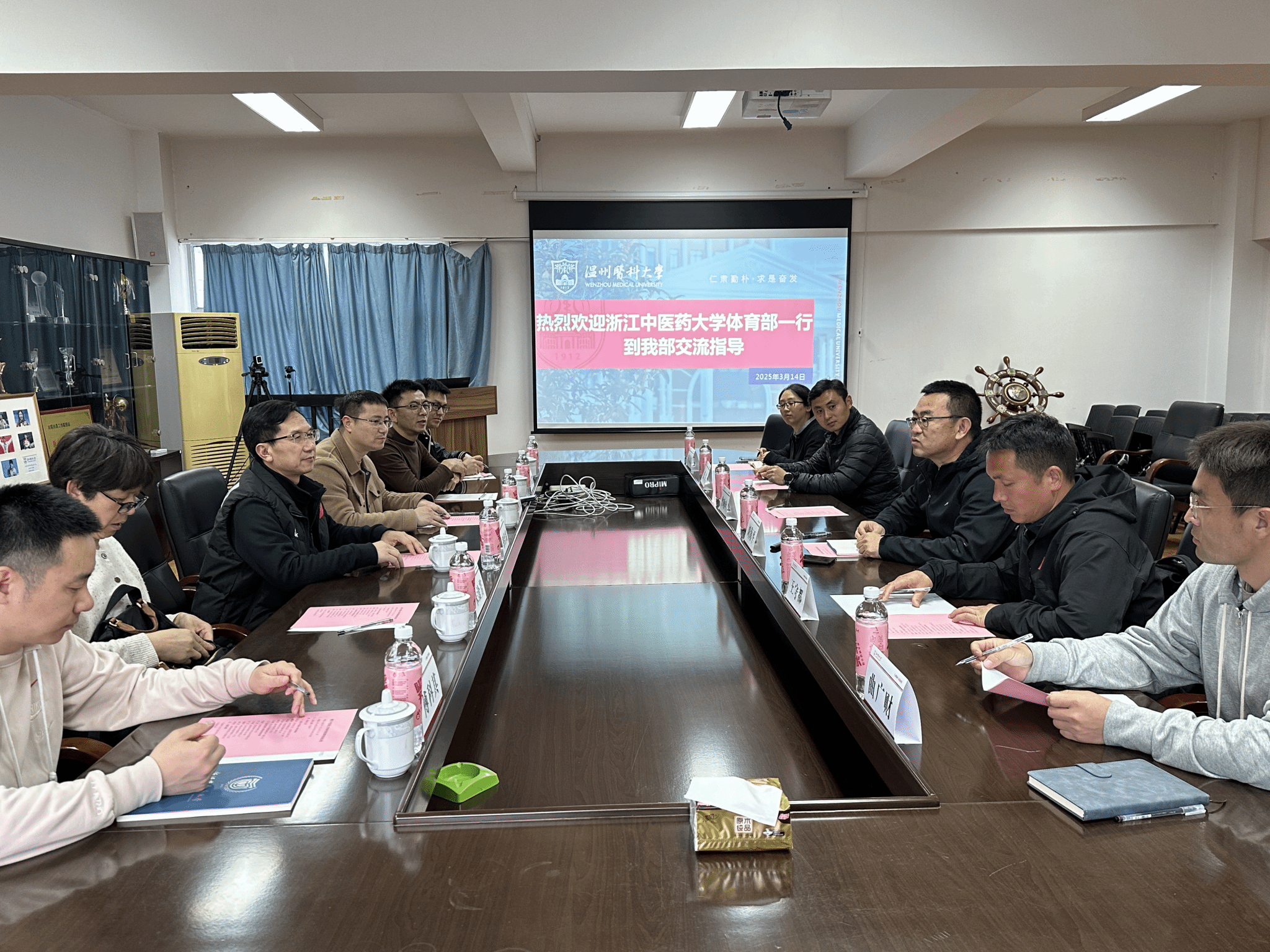 3月14日,浙江中医药大学体育部主任骆红斌率领一行7人莅临我校进行走访调研,双方就体育部的机构设置、师资建设、目标考核、制度建设、教学科研、场馆管理以及智能化系统应用等方面展开了深入交流。