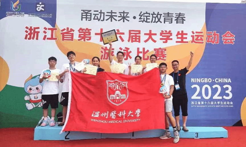 浙江省第十六届大学生运动会已经拉开帷幕,我校网球队、游泳队、健美操队、羽毛球队、武术队陆续参加了代表浙江省大学生最高水平的体育盛会。参赛队员们精心备战、不畏强手,发扬顽强拼搏、勇于争先的精神,在教练员的科学训练指导下,赛出了风格、赛出了水平,充分展示了温医大学子的精神风貌。目前为止,我校体育代表队喜获2金4银2铜的佳绩。同时,校健美操队、网球队获得“体育道德风尚奖”,网球队教练王志朋、游泳队教练施亦男荣获 “优秀教练”称号!