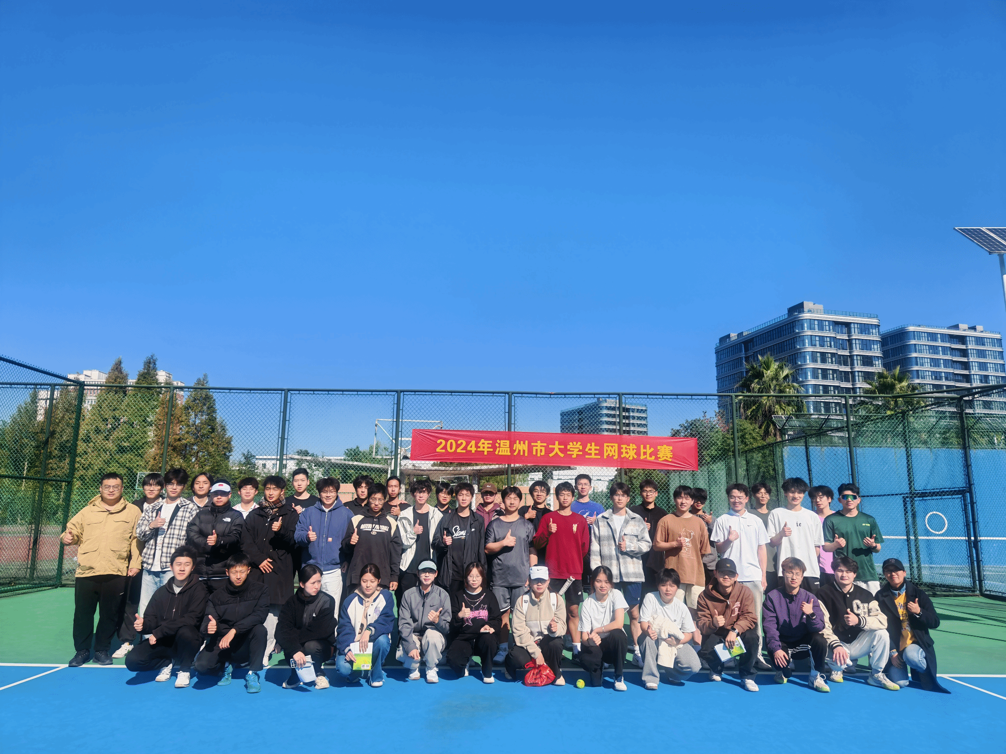 • 12月1日,由温州市网球协会主办、温州医科大学承办的2024年温州大学生网球赛在温州医科大学茶山校区顺利举行。本次比赛设有男子单打、女子单打和男子双打三个项目,共吸引来自温州医科大学、温州大学、温州职业技术学院、温州商学院、温州肯恩大学等多所在温高校的60余名运动员参赛。